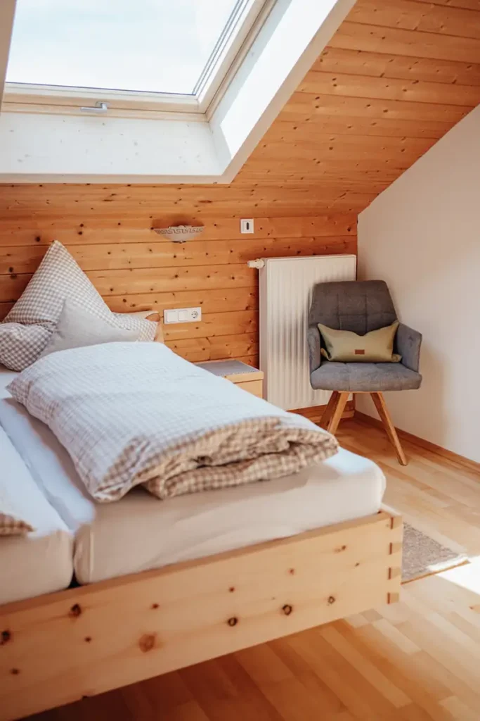und befindet sich im Dachgeschoss des Bauernhofes.