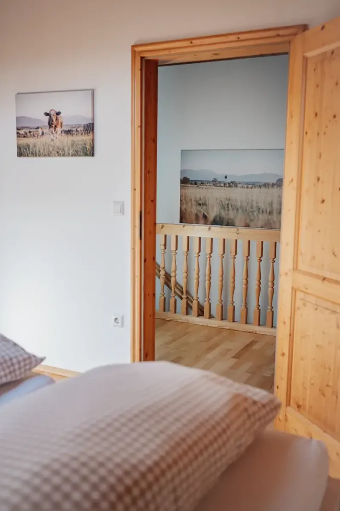 Die geräumige Ferienwohnung im bayerischen, gemütlichen Landhausstil mit komfortabler Einrichtung aus massivem Holz vermittelt Gemütlichkeit und Wärme. Viel Liebe zum Detail und kuschelige Bettdecken lassen Sie entspannen und wunderbar träumen. Auf dem blumengeschmückten Balkon haben Sie einen fantastischen Ausblick in die Berge.